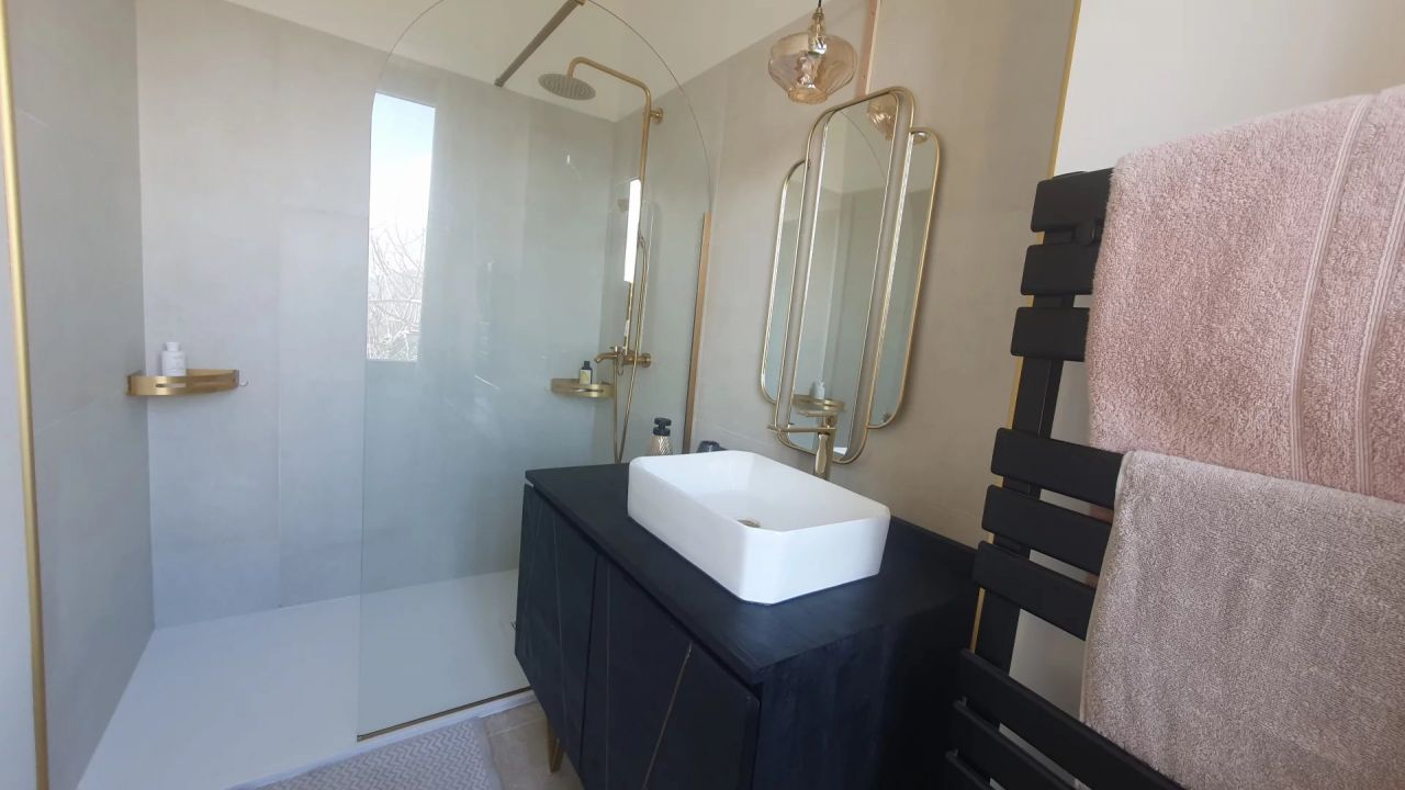 chambres dont deux suites élégantes, trois salles d’eau, de grands balcons filants ouverts sur le maquis et le paysage.