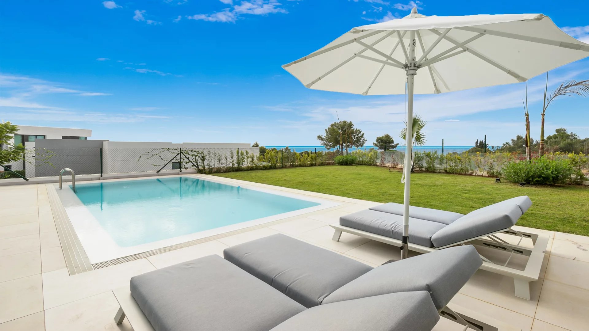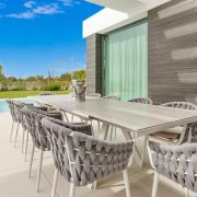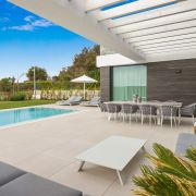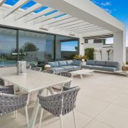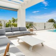 Bienvenue à Cabo Royale 6, une superbe villa moderne située à Cabo Royale, une communauté fermée de villas près de Cabopino, à distance de marche de la plage et très privée avec vue sur la mer.