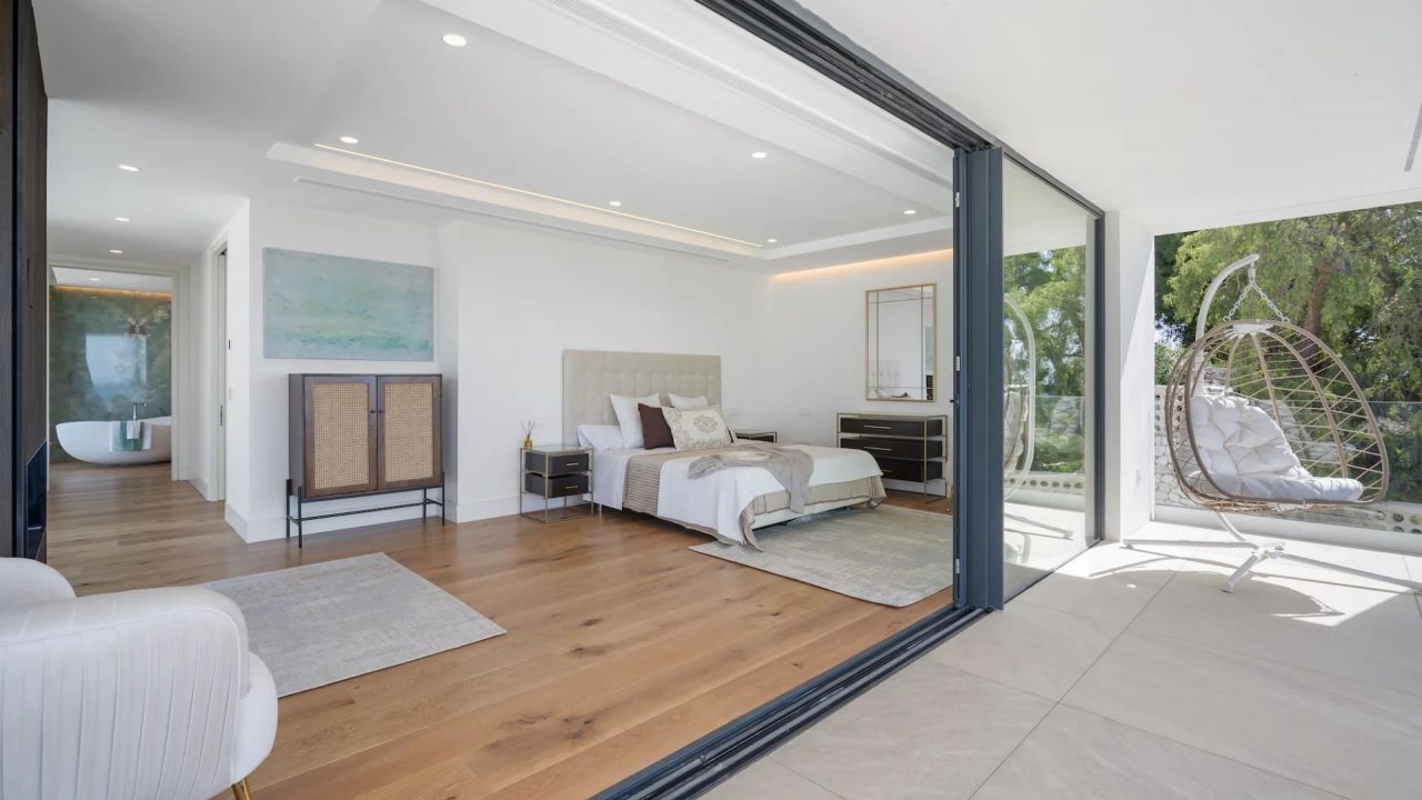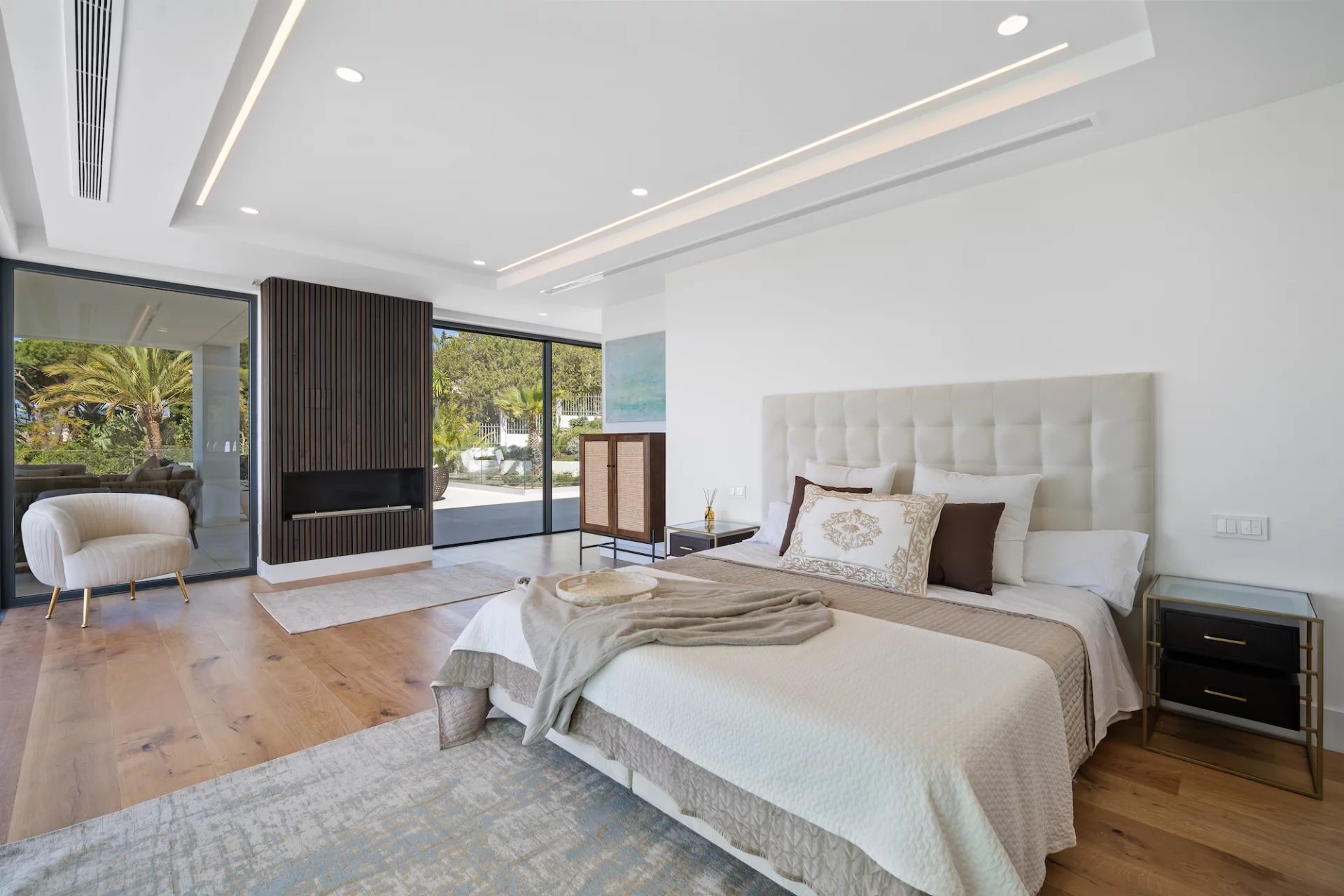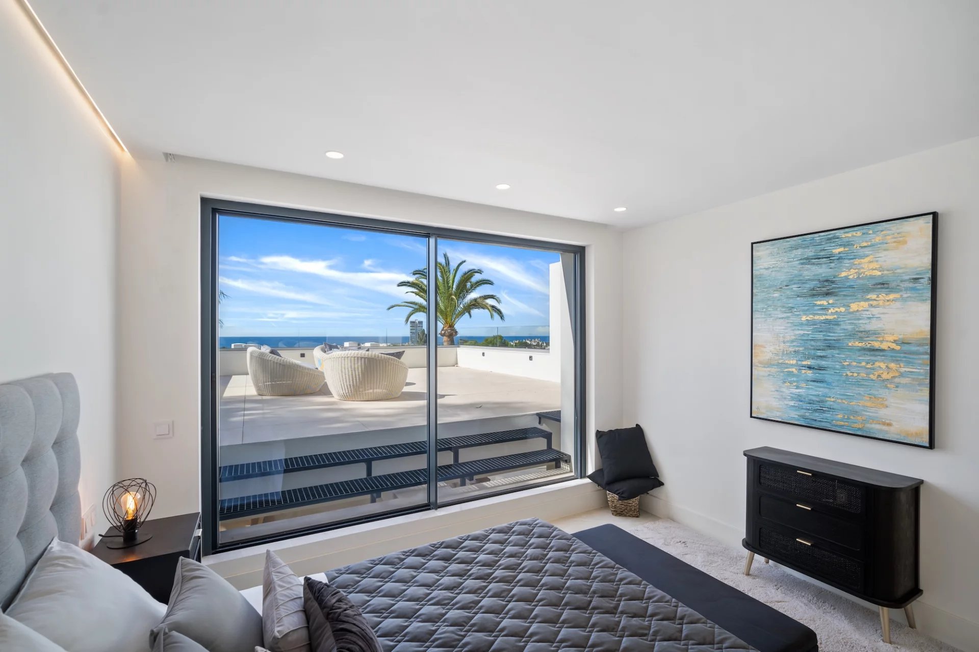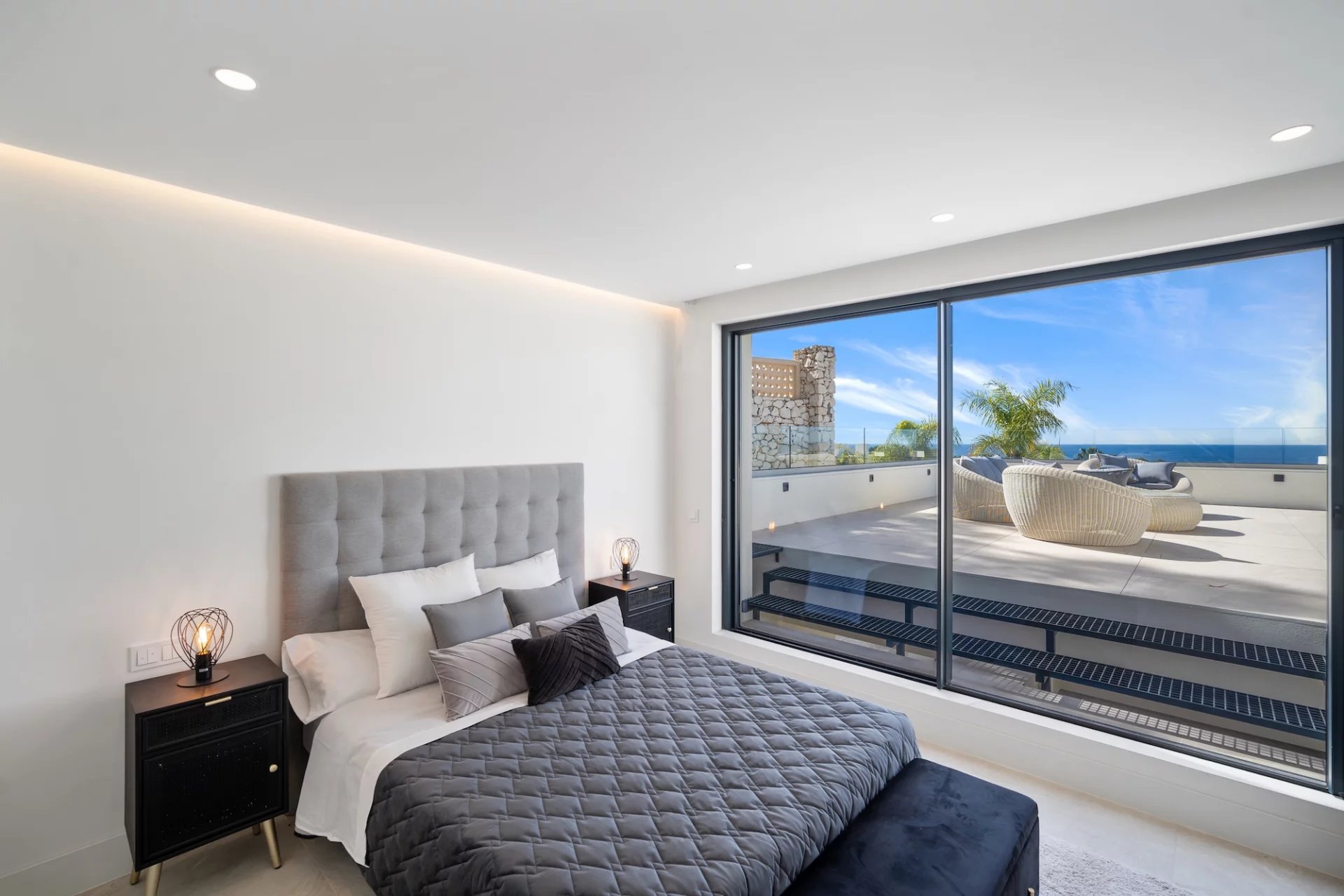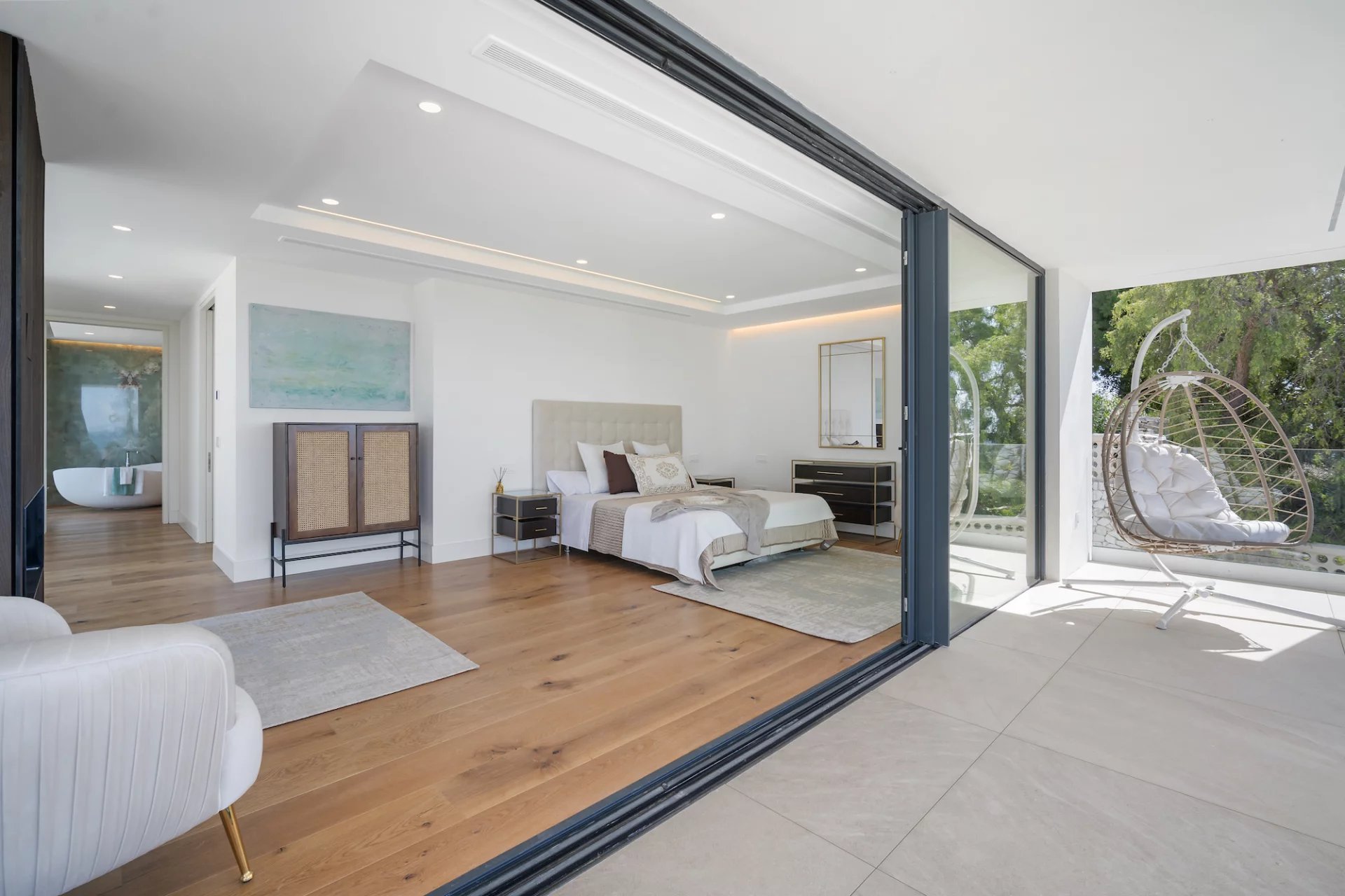La chambre principale se trouve au niveau supérieur de la propriété, avec un dressing et une grande terrasse enveloppante où vous pourrez profiter d'une vue panoramique à 180 degrés.