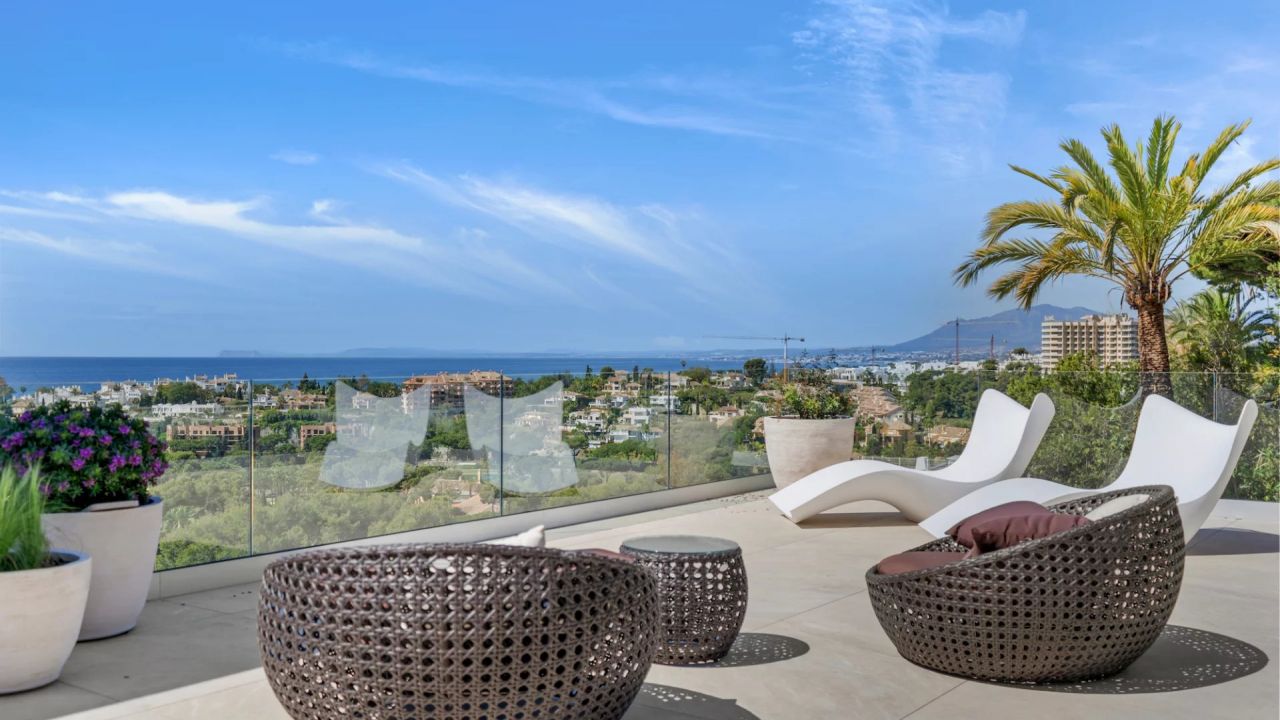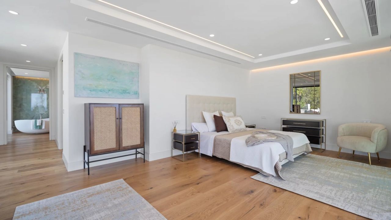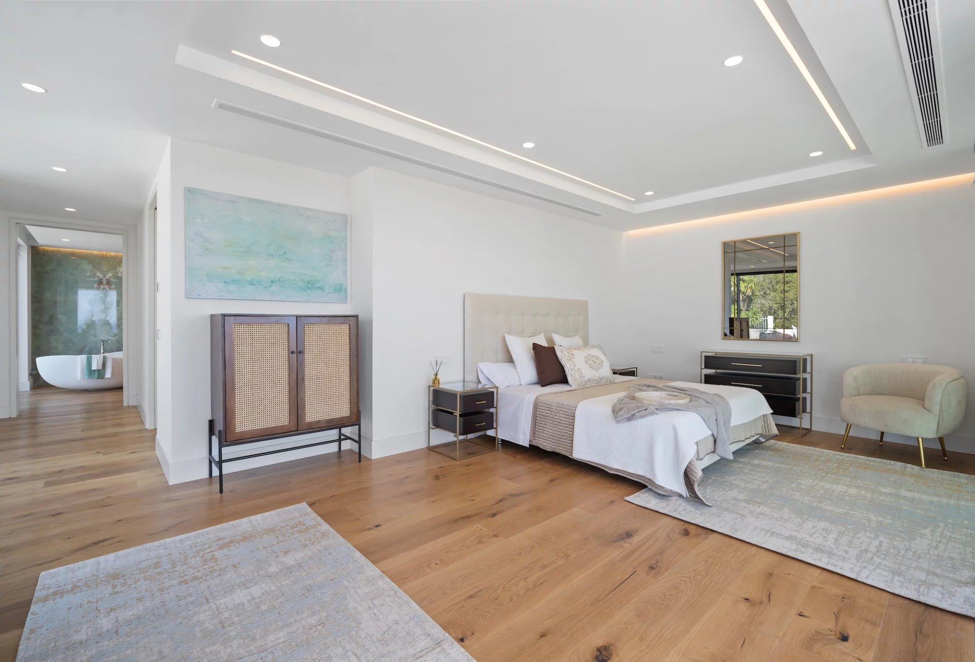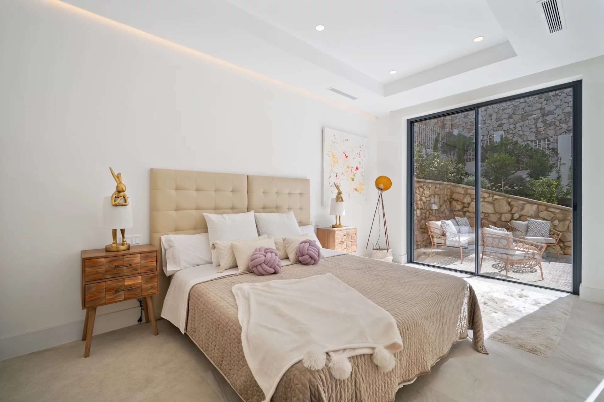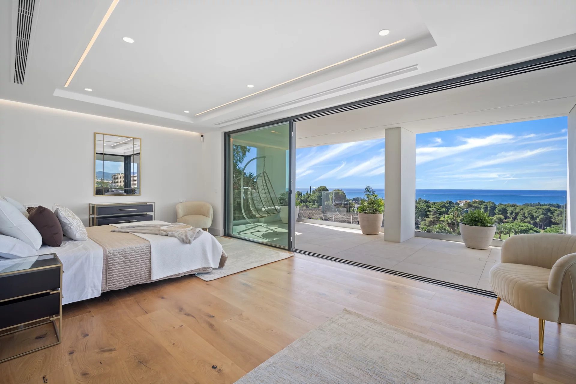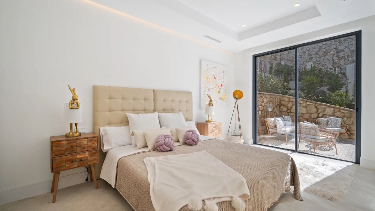 La chambre principale se trouve au niveau supérieur de la propriété, avec un dressing et une grande terrasse enveloppante où vous pourrez profiter d'une vue panoramique à 180 degrés.
