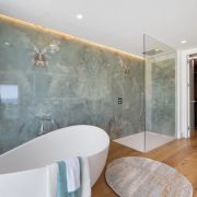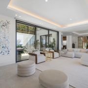 La Villa dispose du chauffage au sol partout, de murs en onyx dans la salle de bain principale, de finitions de qualité supérieure et d'un accès par ascenseur à tous les étages.