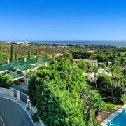Perchée sur une colline privée, la propriété bénéficie d'une vue imprenable sur la mer Méditerranée, de luxuriants parcours de golf et de douces vallées verdoyantes, créant un cadre serein et saisissant.
