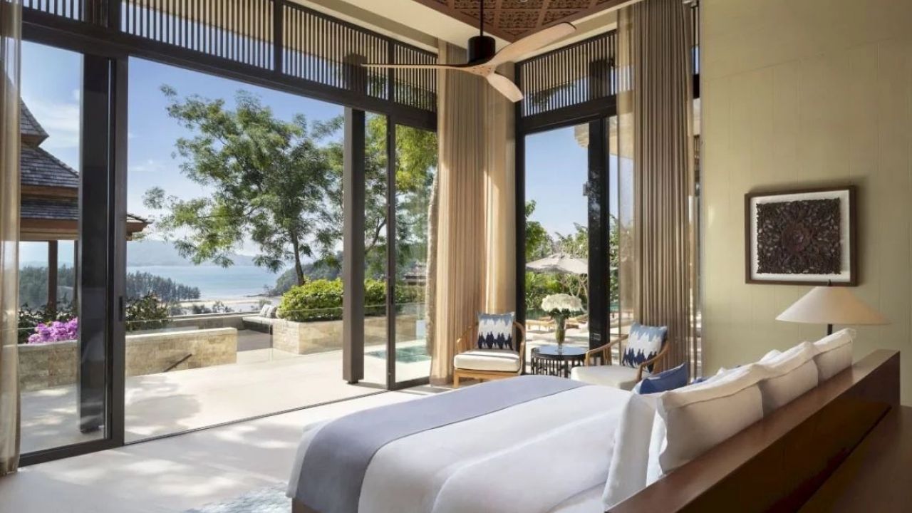 Des ponts panoramiques, une sala aérée et une piscine à débordement de 21 mètres incarnent le meilleur de la vie insulaire, avec une vue imprenable à 180 degrés sur la mer d'Andaman, complétée par de hauts plafonds finement sculptés et de vastes baies vitrées.
