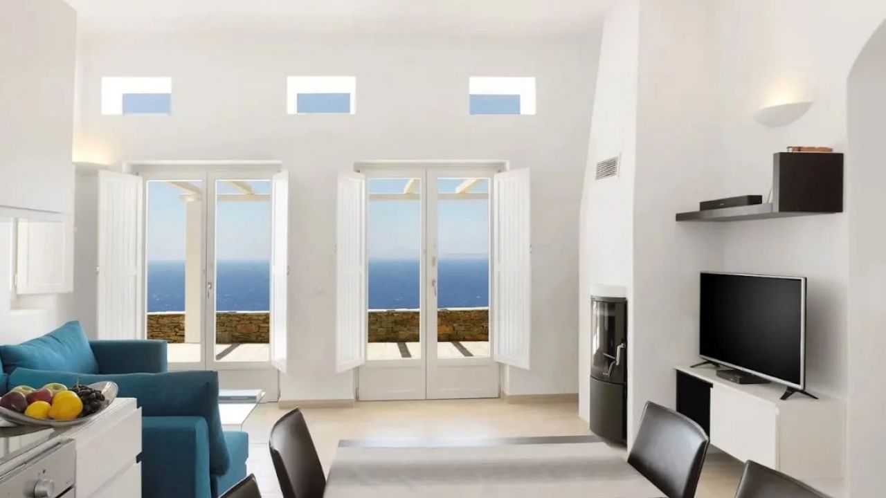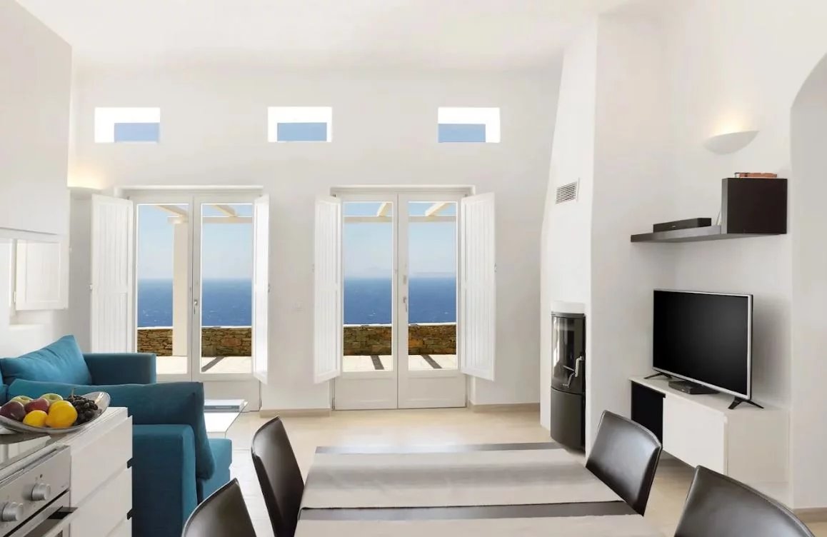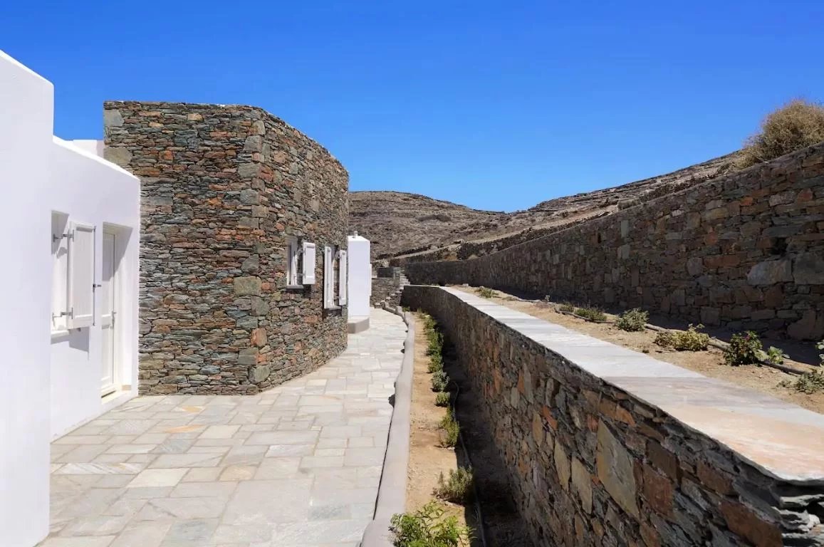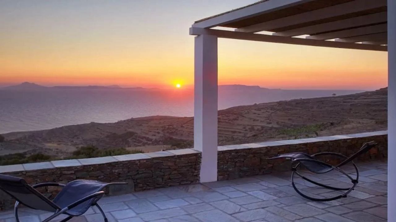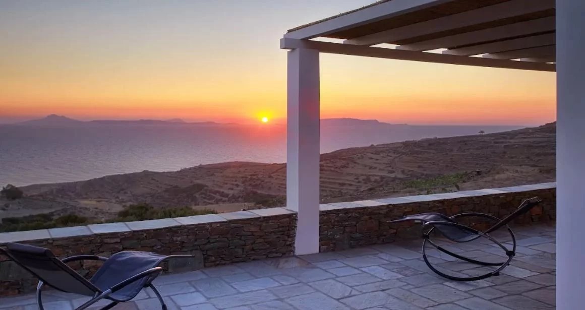 Le domaine offre une vue imprenable sur la mer et bénéficie d'un des couchers de soleil les plus beaux de la mer Égée.