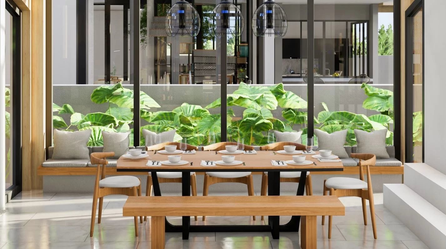 Point culminant : cour tropicale au milieu de la villa pour la vue sur la verdure de tous les coins de la maison
